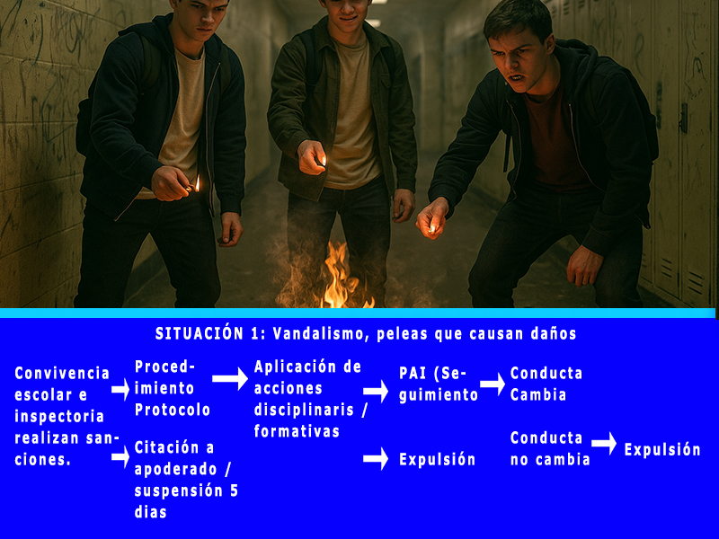 Se debe aplicar cuando ocurren situaciones que ponen en riesgo la seguridad y la convivencia escolar, tales como: